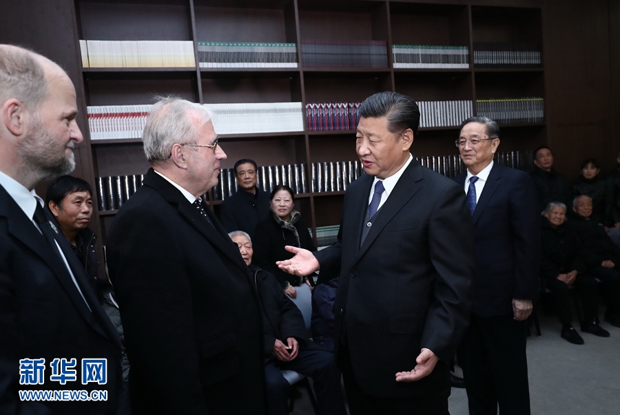 12月13日上午,中共中央、全国人大常委会、国务院、全国政协、中央军委在南京隆重举行南京大屠杀死难者国家公祭仪式。中共中央总书记、国家主席、中央军委主席习近平出席仪式。这是公祭仪式结束后,习近平亲切会见南京大屠杀幸存者代表和为中国人民抗日战争胜利作出贡献的国际友人亲属代表。新华社记者 鞠鹏 摄